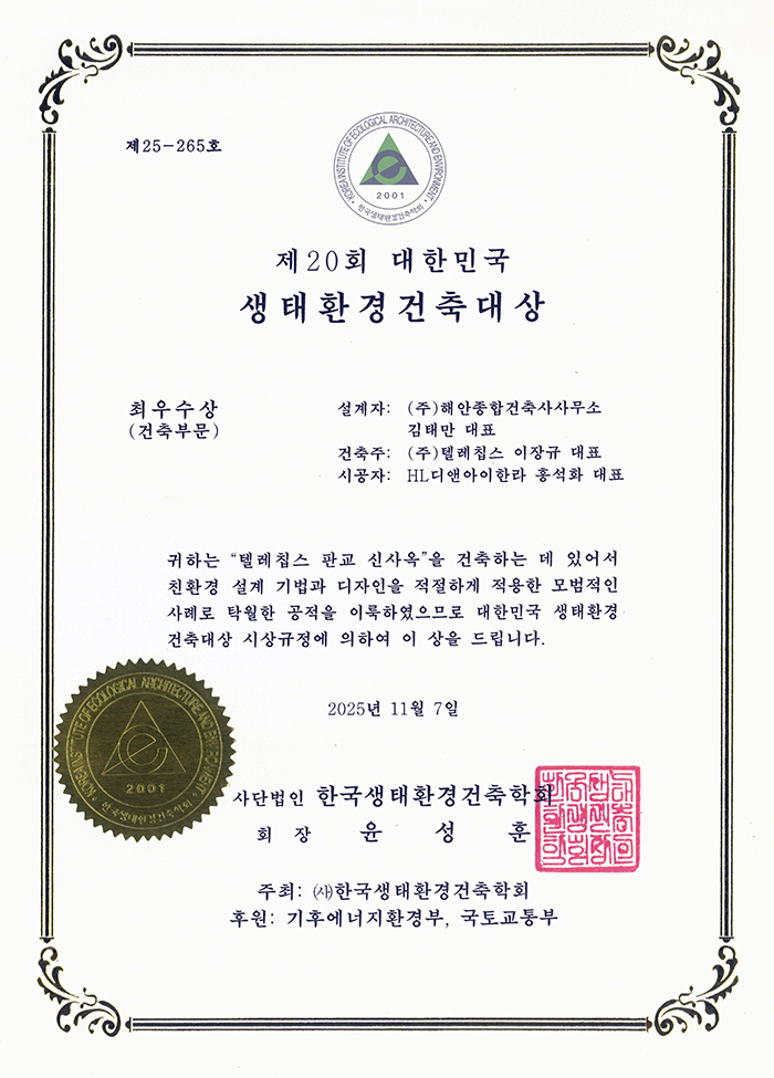 [Award] Telechips Headquarters Pangyo Wins Excellence Award at the Korea Ecological Architecture & Environment Awards