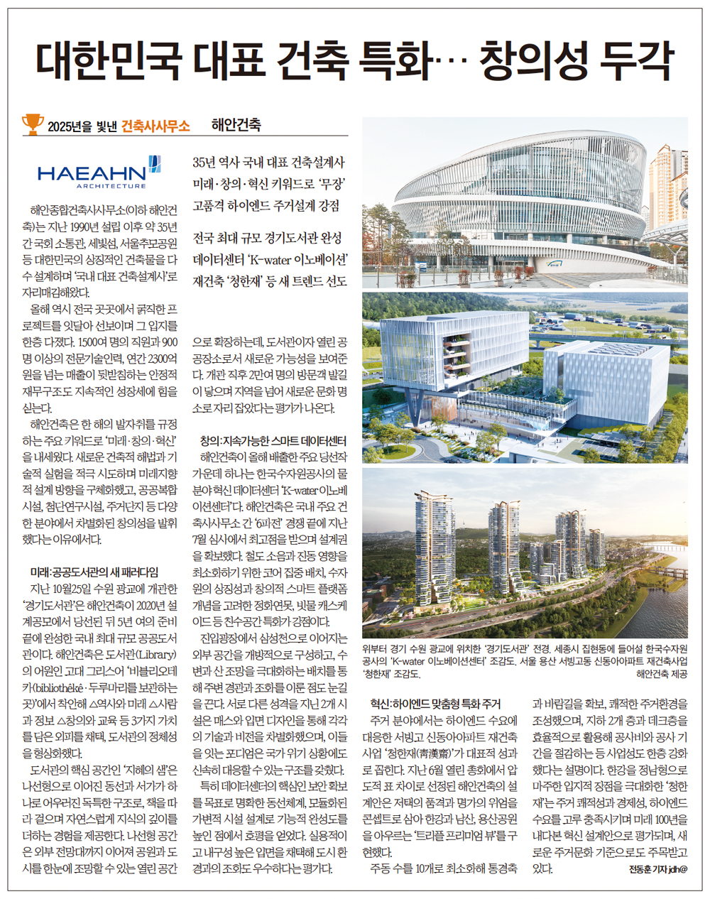 On December 3, Issue of Korea Economic Daily Features “Architectural Firms that Shined in 2025” – Coverage on Haeahn Architecture.