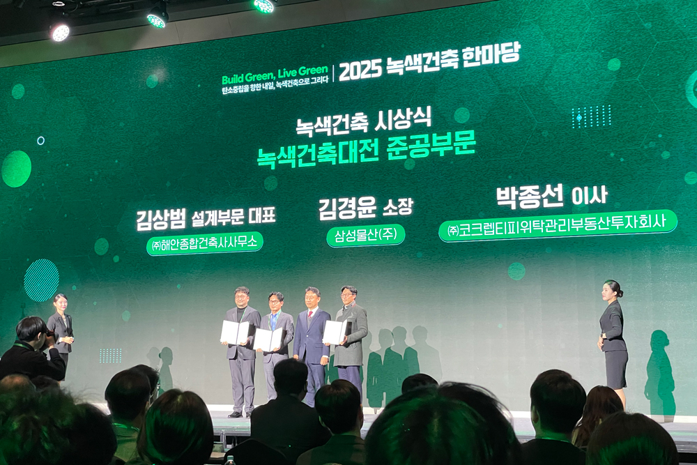 The award ceremony took place on the 4th at the Hanra Hall of Seoul Dragon City during the 2025 Green Building Festival, with an announcement event for the top three winning projects held later that afternoon.