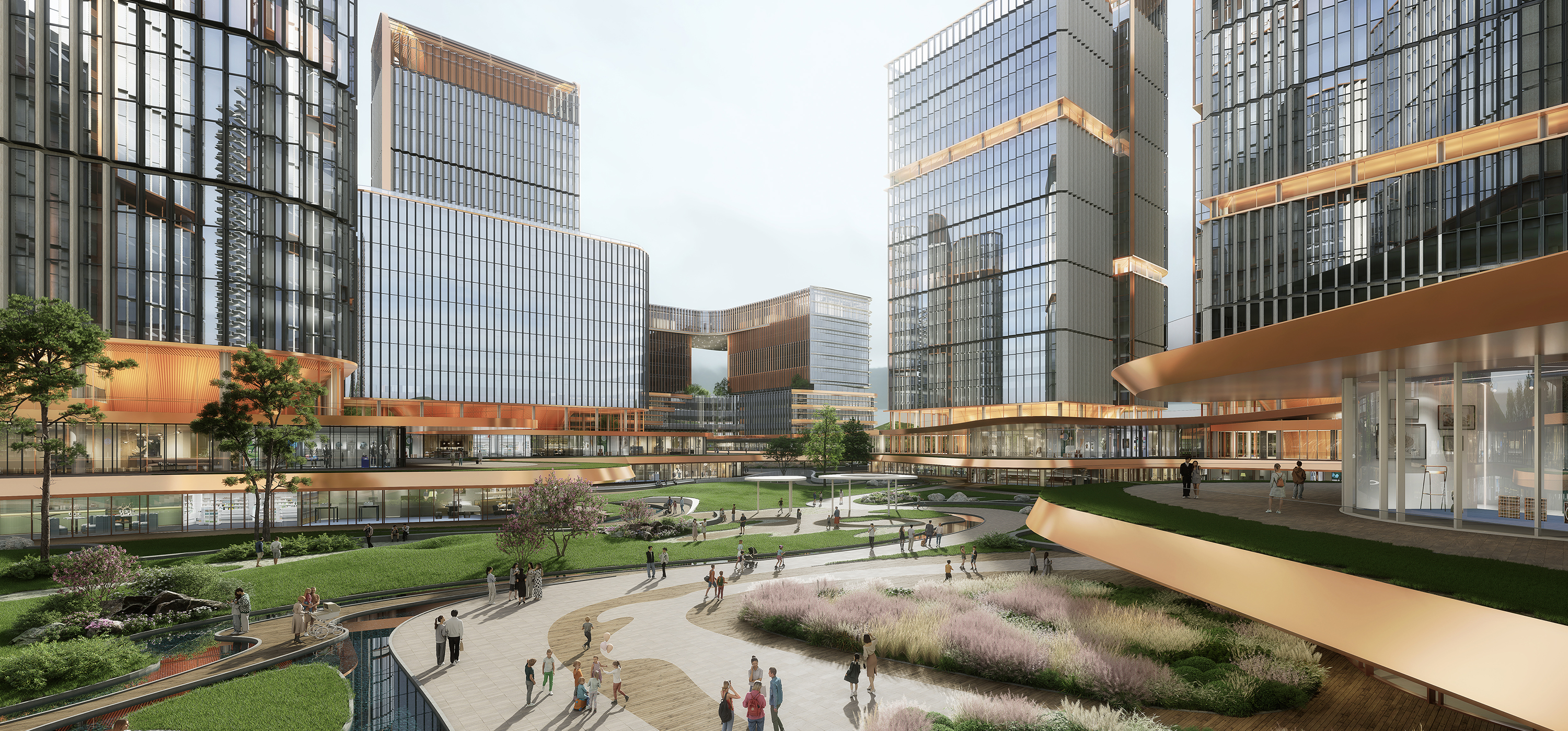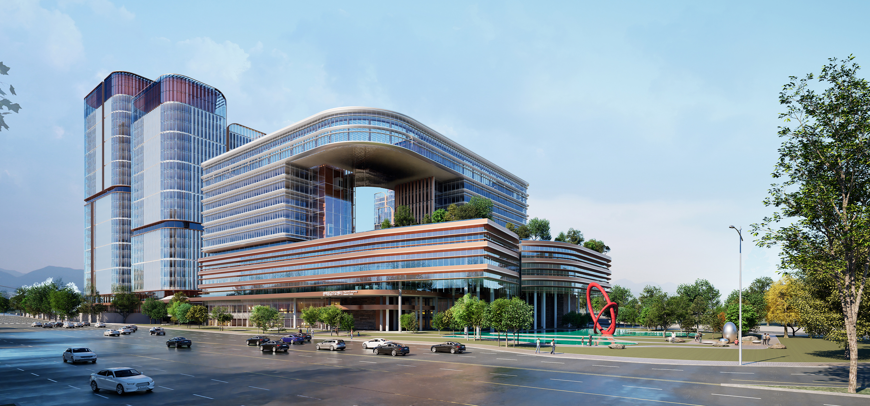 MediPark One is a landmark project in Gwacheon that integrates three clusters: a converged zone of medical, senior care, business, cultural, and commercial functions; a medical zone with a future-oriented general hospital combining emergency services and a healing environment; and a green zone centered on a central garden for rest and interaction. Designed under the concept of one valley, three gardens, the hospital is placed at the entrance, business facilities at the center, and senior care facilities near Mountain Cheonggye to create a balanced and connected environment. Together, these elements form a smart health town with a 24-hour emergency system, the nation’s first senior care facilities linked to a tertiary hospital, and advanced business spaces, contributing to Gwacheon’s future growth.