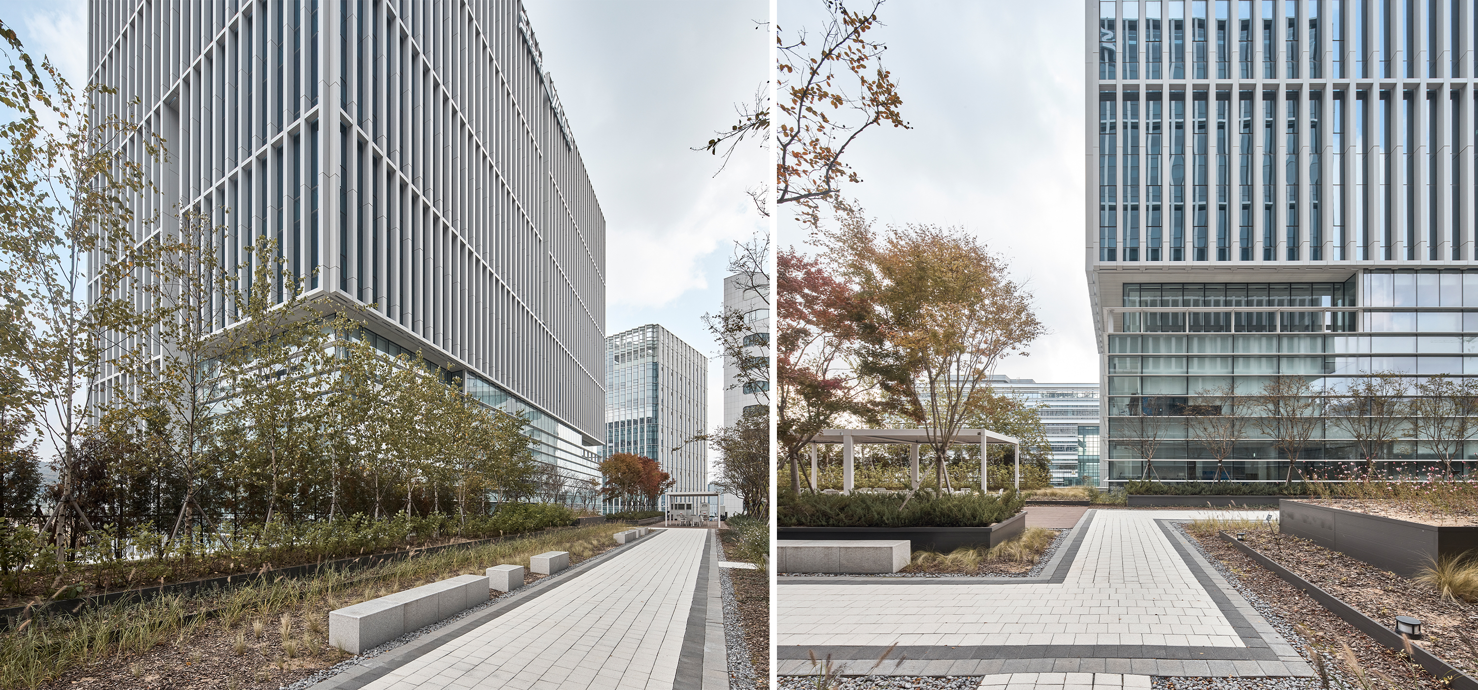 WITEHN TOWER is located in Pangyo Second Techno Valley and planned as an office complex for four technology-driven venture companies and startups supported by leading firms and R&D-focused universities. The design emphasizes a creative environment that encourages communication and collaboration. Responding to the urban context, the four companies are organized into two parallel buildings to secure view corridors, with dedicated lobbies and cores ensuring corporate independence. The island-like site, connected by three pedestrian paths, is articulated through themed open spaces, while a central open startup space reinforces the public and collaborative character of the project.