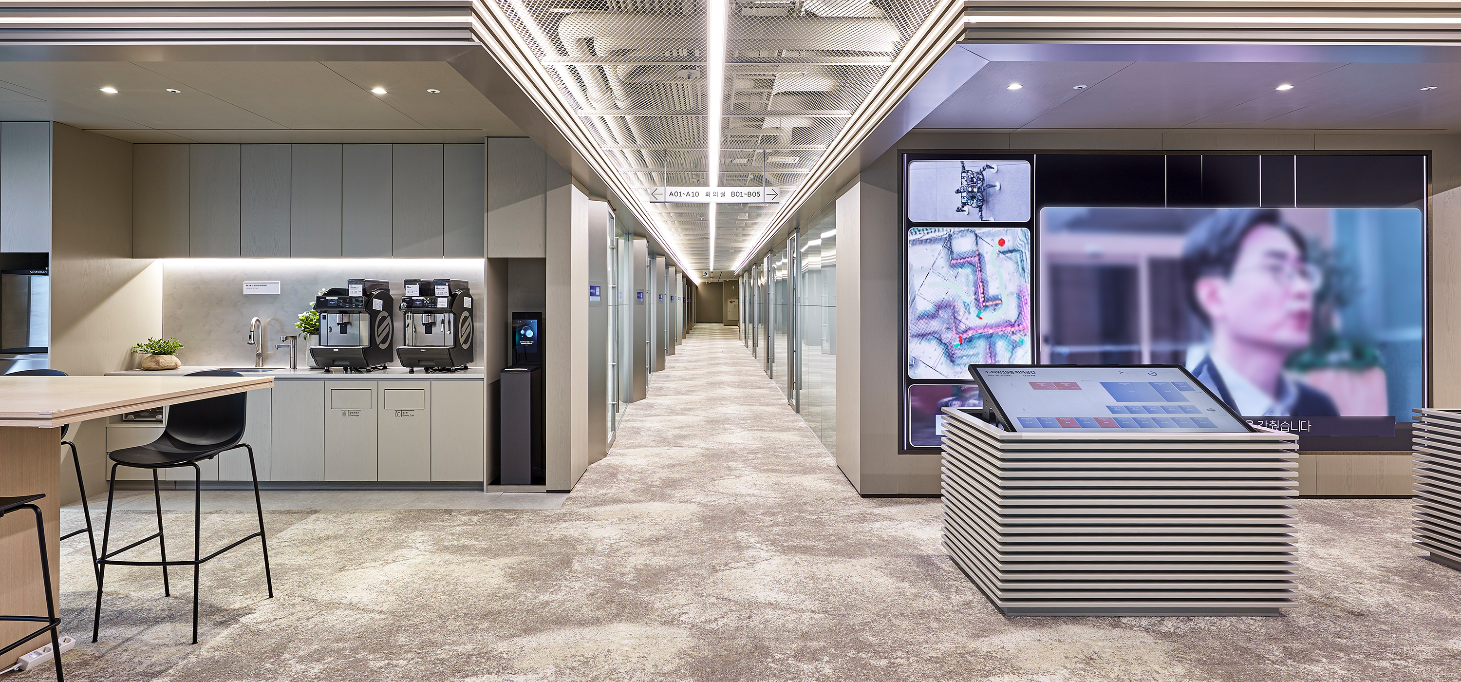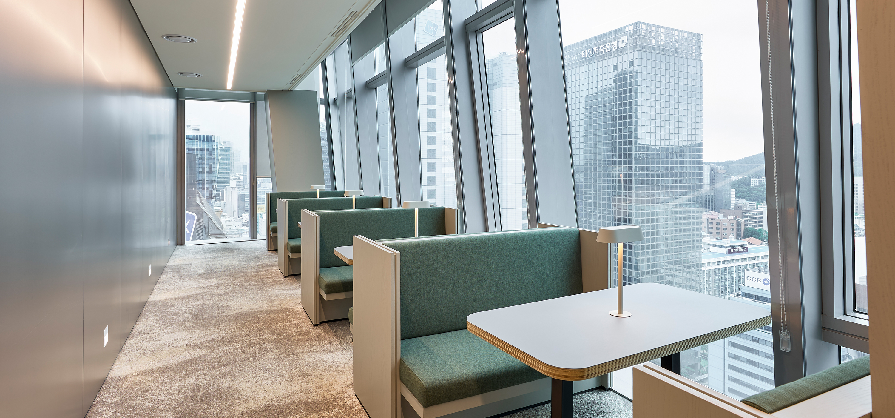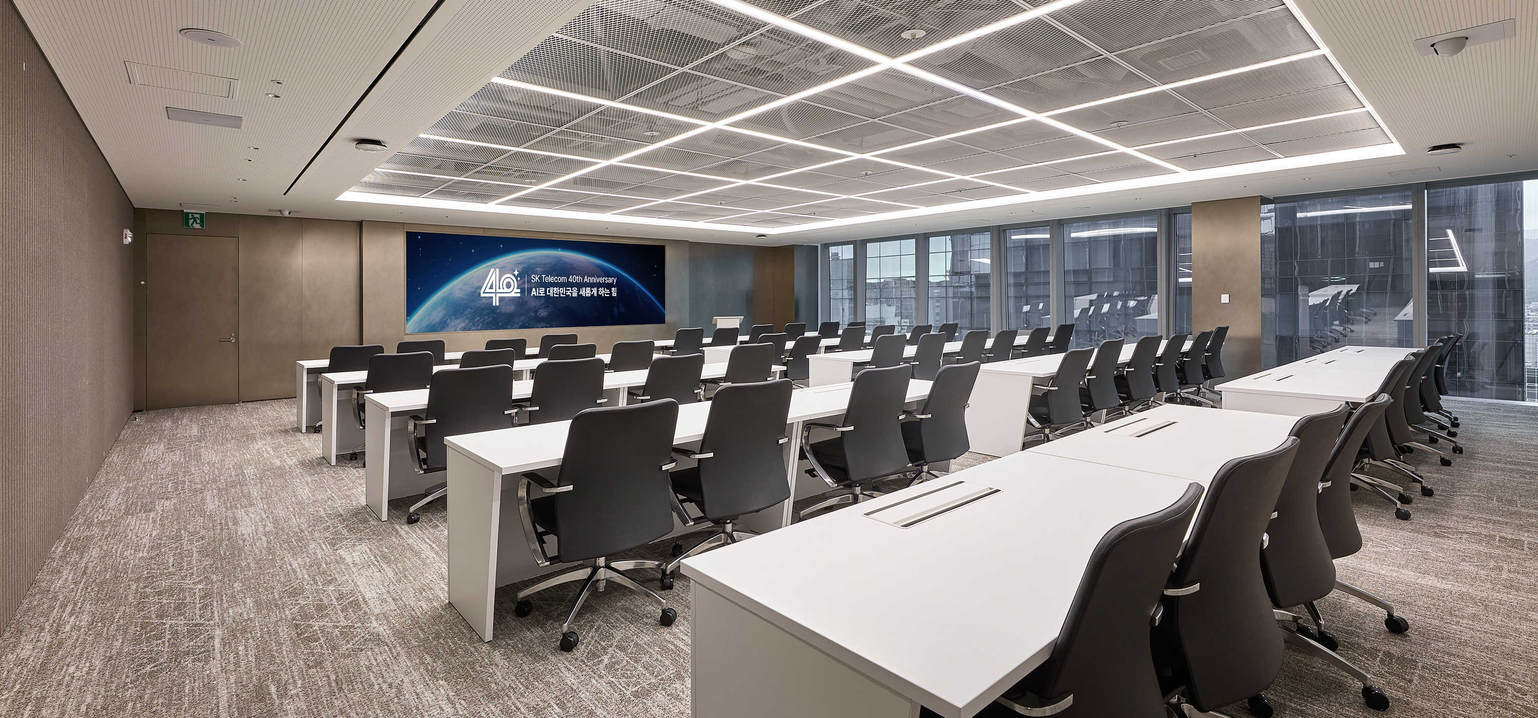 T-Tower 전용 회의층은 지나온 40년, 나아갈 40년 Global AI SKT의 새로운 여정의 출발선상으로 정통성과 혁신을 동시에 느낄 수 있는 디자인을 구현, ‘ T-Loop’라는 공간 컨셉을 통해 SKT의 업무 흐름처럼 유연하고 순환되는 협업 구조를 공간에 담았다. 공간 디자인의 특징은 첫째, 평면상 리니어 라인을 적용하여 회의 공간과 라운지를 시각적 확장과 활용도를 높이고, 둘째, 공간의 기능에 따라 다양한 물성과 컬러를 적용하여 회의 집중도, 심리적 안정과 리프레시를 동시에 경험할 수 있는 공간을 계획했으며 셋째, ICT 기술을 공간 전반에 접목하여, 예약, 화상 회의, 프레젠테이션이 유기적으로 연동되는 스마트 오피스를 구현했다. ‘SKT Meeting Place’는 세대 변화에 따른 업무 방식과 SKT의 기업 문화를 잘 반영한 공간으로, 유연하고 건강한 업무 환경 속에서 더 창의적이고 즐거운 일상이 펼쳐질 것으로 기대한다.