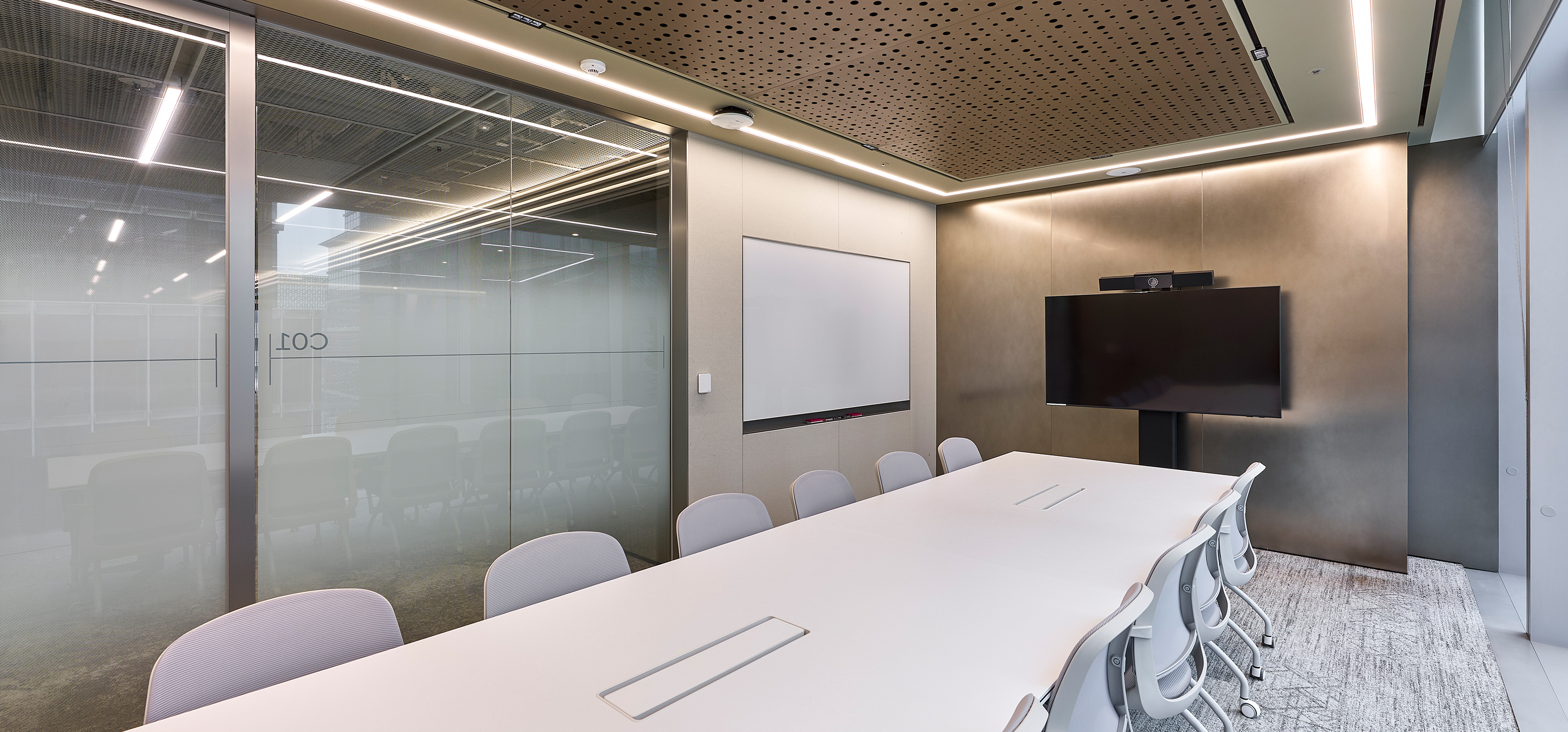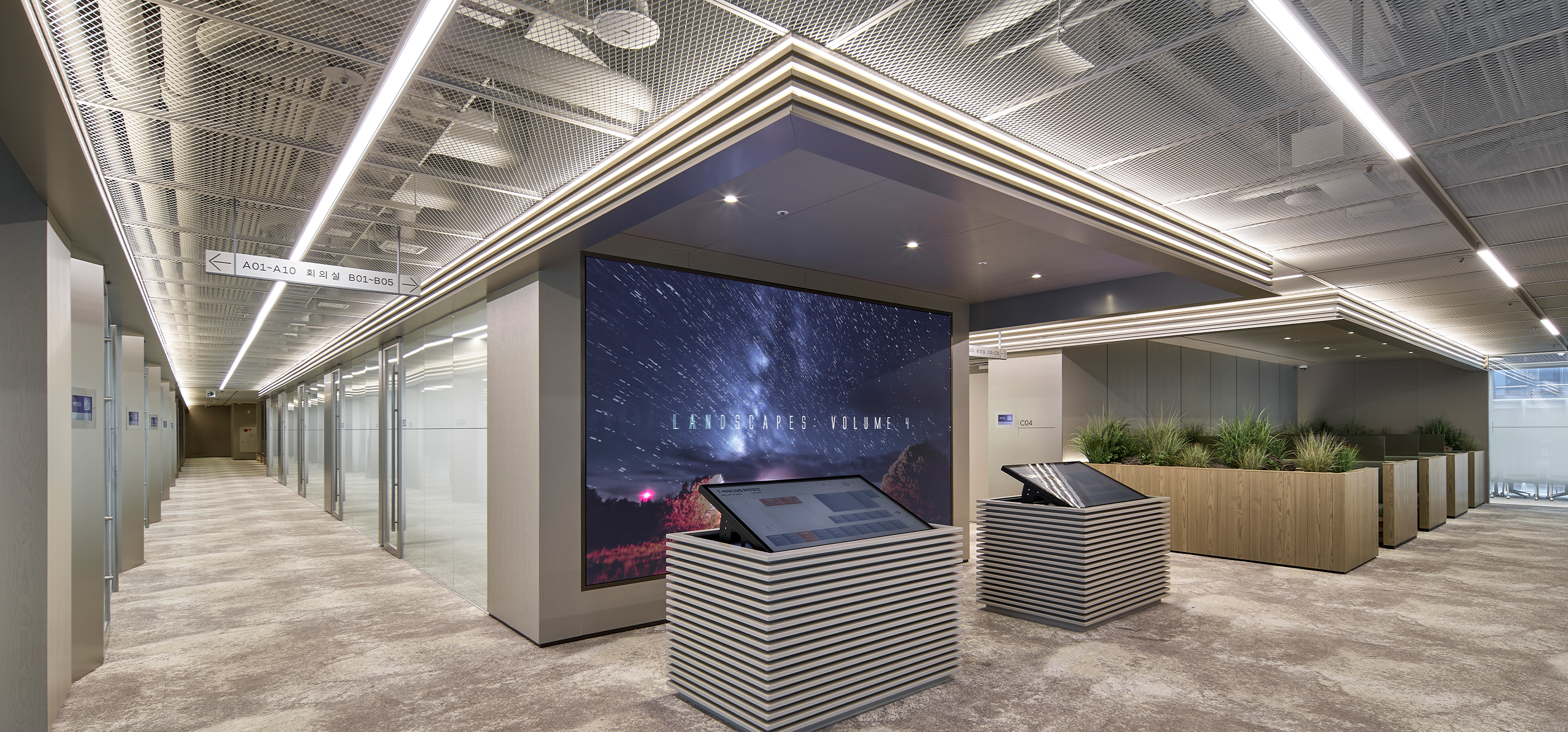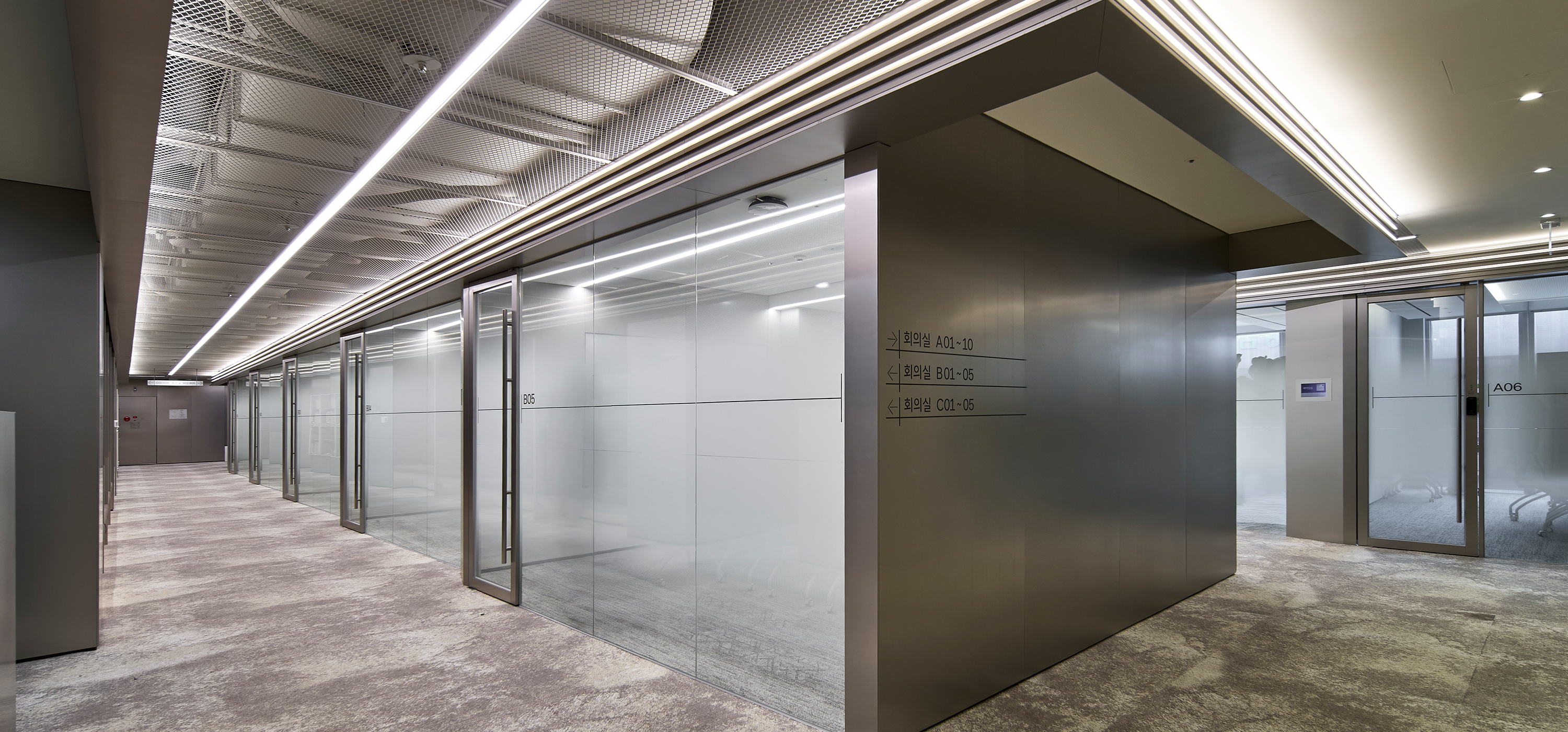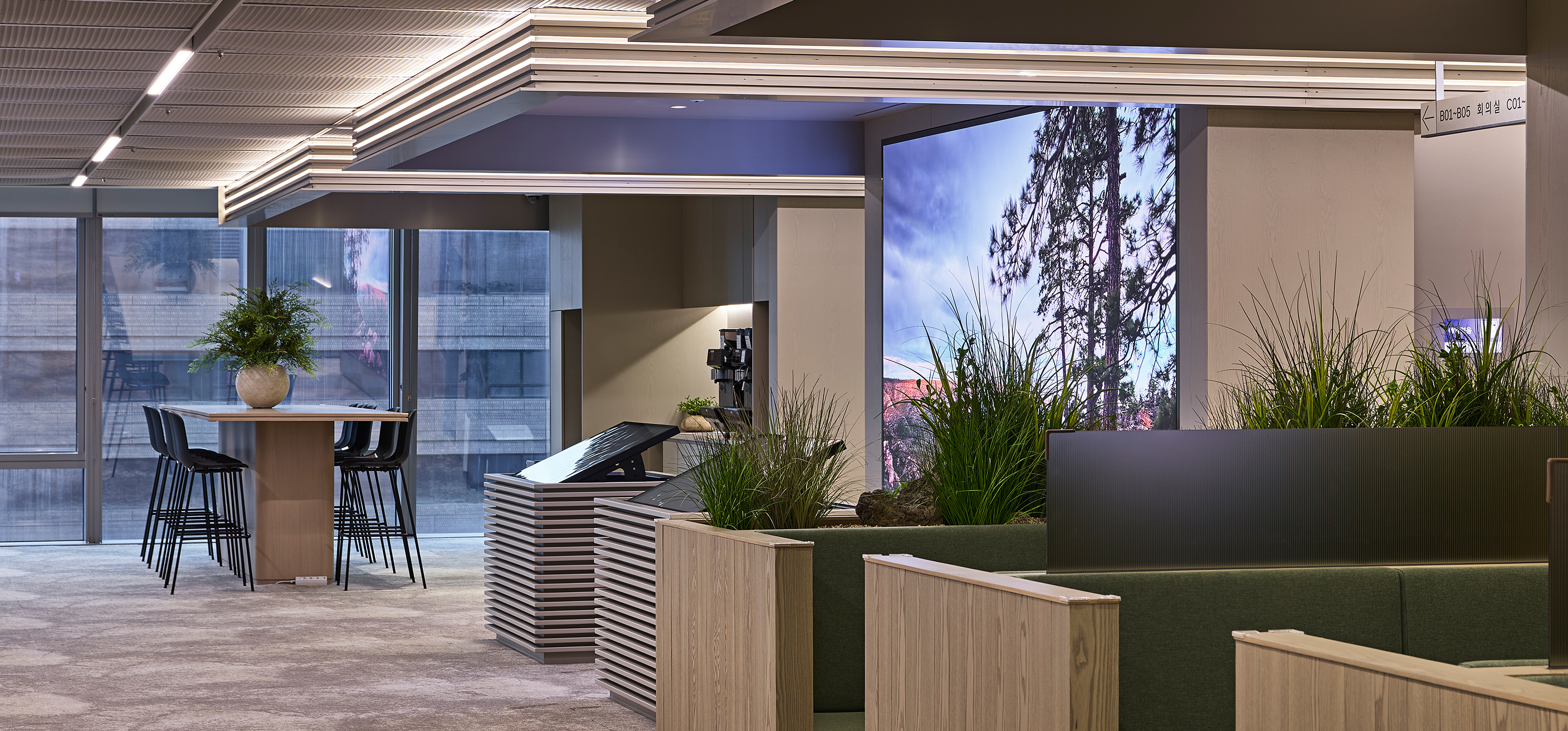 T-Tower 전용 회의층은 지나온 40년, 나아갈 40년 Global AI SKT의 새로운 여정의 출발선상으로 정통성과 혁신을 동시에 느낄 수 있는 디자인을 구현, ‘ T-Loop’라는 공간 컨셉을 통해 SKT의 업무 흐름처럼 유연하고 순환되는 협업 구조를 공간에 담았다. 공간 디자인의 특징은 첫째, 평면상 리니어 라인을 적용하여 회의 공간과 라운지를 시각적 확장과 활용도를 높이고, 둘째, 공간의 기능에 따라 다양한 물성과 컬러를 적용하여 회의 집중도, 심리적 안정과 리프레시를 동시에 경험할 수 있는 공간을 계획했으며 셋째, ICT 기술을 공간 전반에 접목하여, 예약, 화상 회의, 프레젠테이션이 유기적으로 연동되는 스마트 오피스를 구현했다. ‘SKT Meeting Place’는 세대 변화에 따른 업무 방식과 SKT의 기업 문화를 잘 반영한 공간으로, 유연하고 건강한 업무 환경 속에서 더 창의적이고 즐거운 일상이 펼쳐질 것으로 기대한다.