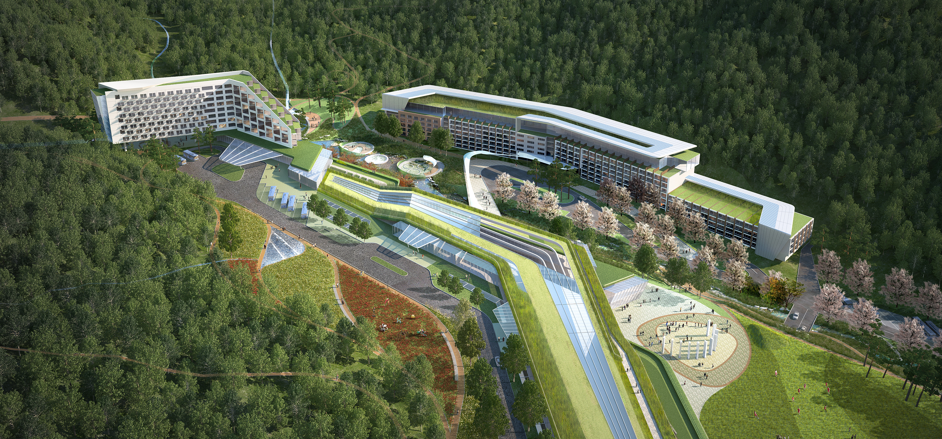 휴양기능이 강화된 신개념연수원인 ‘Park Galleria’는 연수원과 리조트의 각 시설이 독립적이지만 연계된 볼륨으로서, 대지의 경사와 흐름에 순응하는 형태로 디자인되었다. 대지와 일체화된 매스는 테라스형으로 공원화되어 자연과 어우러진 경관을 만들어내고, 3개의 야외갤러리와 8개의 공원을 따라 기존 산책로가 연결되도록 계획하였다. 연수원 숙박동은 자연을 조망하고, 리조트와의 간섭을 배제하는 것을 우선적으로 고려하여 배치하였고, 컨퍼런스동은 복합적인 연결기능을 수행하면서도 휴양지로서 역할하는 경우를 최대한 고려하였다. 기존 리조트는 다양한 형태의 휴양기능을 담당 할 수 있도록 계획하였다.